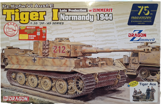 *Unsealed, Damaged Box* Dragon 1/35 Pz.Kpfw.VI Ausf.E Tiger I Late Production with Zimmerit Normandy 1944 75th Anniversary Normandy Campaign + Tiger Ace Figure Crew Set