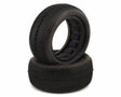 The Sprinter tire is designed to have the ability to match front and rear pin tires from JConcepts. The Sprinter 4wd front tire has square, angled pins that are stacked vertically to flex and fold evenly across the tire. Typically, a stacked tread will wear less and provide more bite while the aligned space helps rotation in the turns and gives a snappy release to square up quickly. Starting with the new tread, the team focused on durability and performance to bring a front tire option to market that competes on loose surfaces which are wet or dusty.