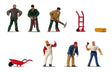 Pack of 6 painted people, wheelbarrow, hand trolley and basket to suit HO/OO model railway layouts