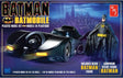This AMT model kit captures every detail of Batman’s iconic vehicle from the turbine engine to computer maintenance panels and authentic dashboard and cockpit. It features an optional grappling hook and twin machine guns. It is injected in black plastic with chrome and clear parts with rubber tires and, for the first time, includes a resin figure of Batman himself.
