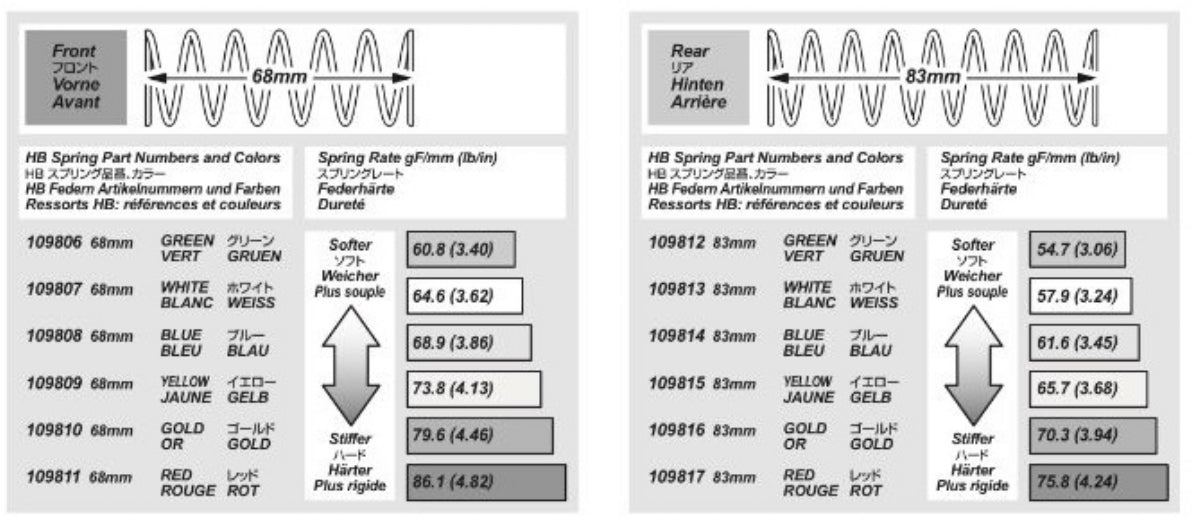 HB RACING Rear Shock Springs (White/83mm/57.9gF/2pcs)