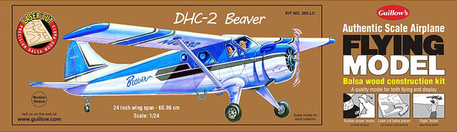 An authentic scale model of the single engine propeller driven STOL aircraft, the DHC-2 Beaver was primarily known as a bush plane. It is used for cargo and passenger hauling in the rugged and remote areas of the world. This Guillow creation is a faithful replica of the real plane, designed for ease of assembly and flight stability. A beautiful model of an exceptionally fine light plane.