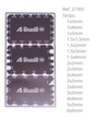 1x3 mm, 1x4 mm, 1x5 mm, 1.5x1.5 mm, 1.5x2 mm, 1.5x3 mm, 1.5x6 mm, 2x2 mm, 2x3 mm, 2x4 mm, 2x5 mm, 2x6 mm, 3x3 mm, 4x4 mm, 5x5 mm and 6x6 mm.