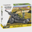 The howitzer model was developed in 1:35 scale matching the rest of the COBI Historical Collection. It has a movable barrel and features a photo-realistic design. The set includes a figure of a German artilleryman armed with a P08 Parabellum pistol. The set also includes a plate with the name of the model. The set complements the collection from the Second World War; designed for enthusiasts of history; military technology and fans of the highest quality block modeling!