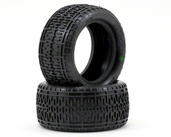 The REBAR is designed for indoor tracks and hard packed, blue grooved outdoor tracks. The REBAR features double side rails on the edges of the tire provide extra sidewall support. This increases side bite and keeps your buggy planted in the turns. The wide staggered center lugs give the REBAR great forward traction to hook up the power and launch your buggy off the corner and over the jumps.