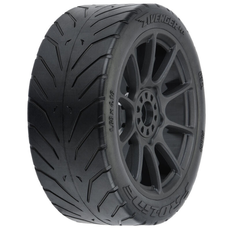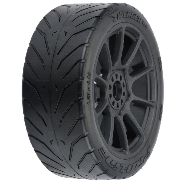 PRO906921 | Avenger HP S3 (Soft) Street BELTED 1:8 Buggy Tires Mounted on Mach 10 Black Wheels (2) for Front or Rear