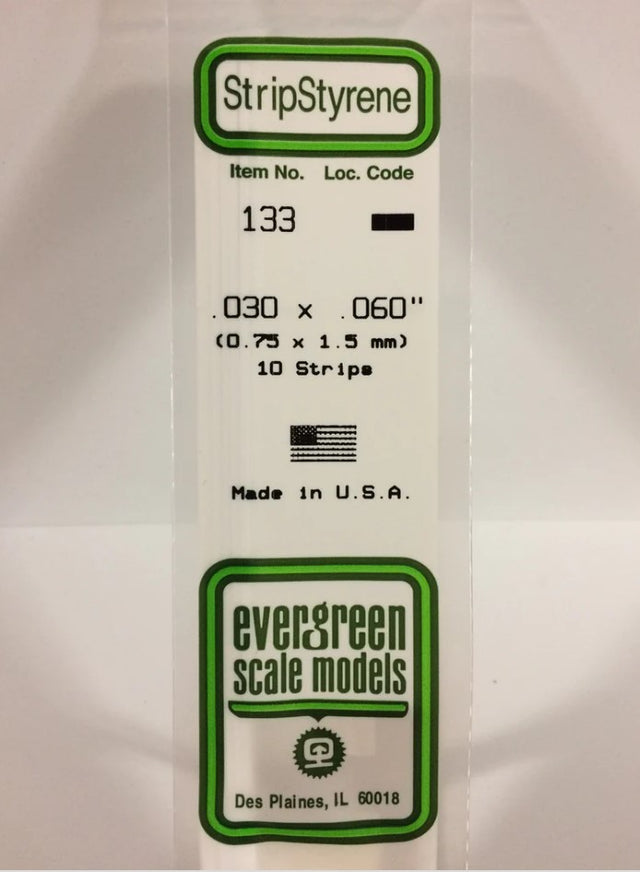 Stripstyrene White.75x1.5mm 10